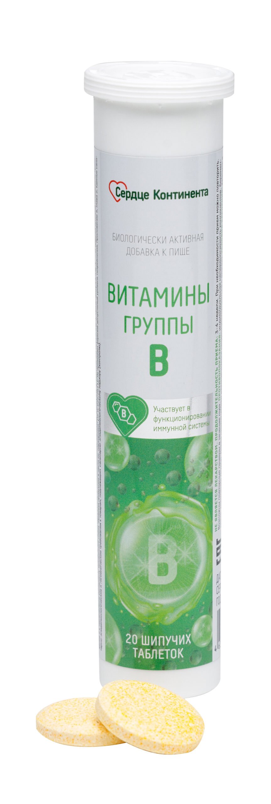 შემადგენლობა: ასკორბინის მჟავა (ვიტამინი C), თიამინის ჰიდროქლორიდი (B1), პირიდოქსინის ჰიდროქლორიდი (B6), ციანოკობალამინი (B12), კალციუმის პანტოთეატი (B5), ნიკოტინის მჟავა (B3), რიბოფლავინი (B2), ბიოტინი (H), ფოლიუმის მჟავა (B9), კალციუმის ფოსფატი, მაგნიუმის ლაქტატი, თუთიის ლაქტატი, პოლიეთილენგლიკოლი 4000, ლიმონმჟავა, ნატრიუმის ბიკარბონატი, ნატრიუმის კარბონატი, არომატიზატორი (სახელწოდების მიხედვით), სუკრალოზა (დამატკბობელი)