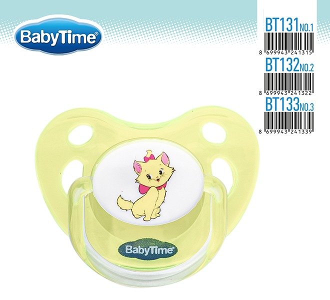 BT131 სილიკონის ორთოდონტული გაუმჭვირვალე Candy თავსახურით №1 (0 – 6 თვე)
