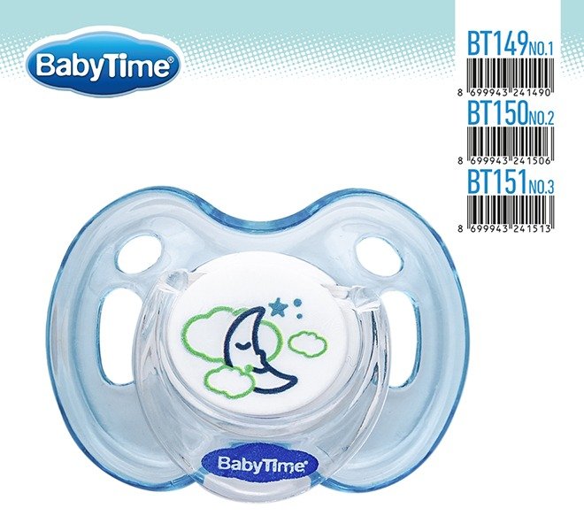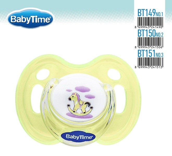BT150 სილიკონის მრგვალი მატყუარა Candy ილუსტრაციით, თავსახურით №2 ( 6- 18 თვე)