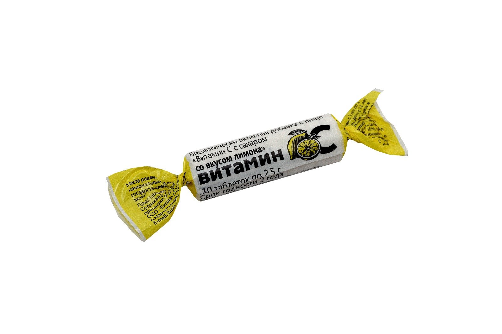 ვიტამინი C შაქრით, ლიმონის არომატით, აბი 2.5გრ №10